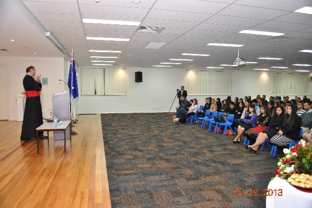 حضر المحاضرة القس نرساي يوخانس، سكرتير مطرانية الكنيسة والمسؤول الروحي للشباب للناطقين باللغة الآشورية ولجمعية اطفال الرب للاعمار 3-13 سنة، والقس نينوس ايليا، المرشد الروحي لمدرسة القديس ربان هرمزد الابتدائية الاشورية في سيدني.