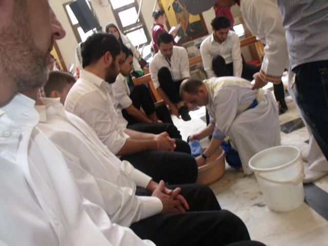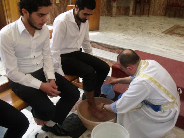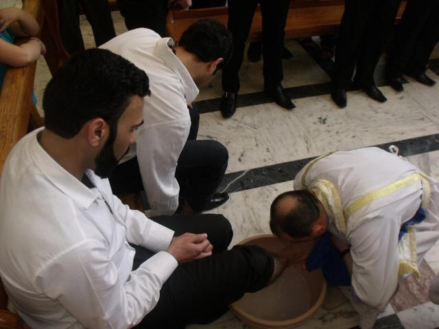 من ضمن نشاطات رعية مار كيوركيس التابعة لكنيسة المشرق الاشورية بدمشق، قام الاب توما ككا كاهن الرعية بغسل ارجل التلاميذ وبعدها القداس الاحتفالي وذلك يوم الخميس المصادف 17/4/2014