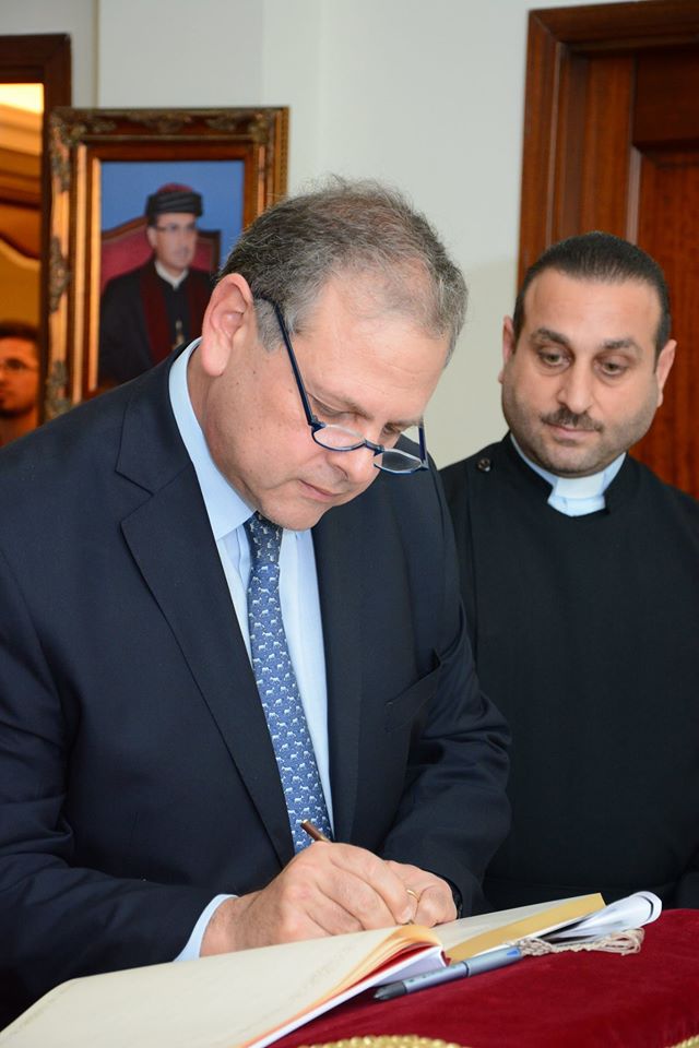 3) معالي وزير الدولة الأستاذ نبيل دو فريج ممثلاً عن رئيس مجلس النواب اللبناني الأستاذ نبيه بري ورئيس مجلس الوزراء الأستاذ تمام سلام المطرانية الآشورية في لبنان.