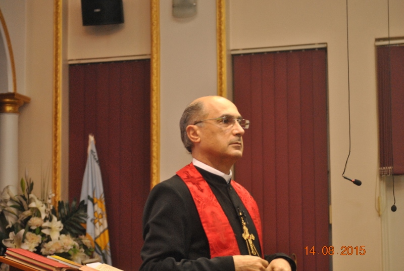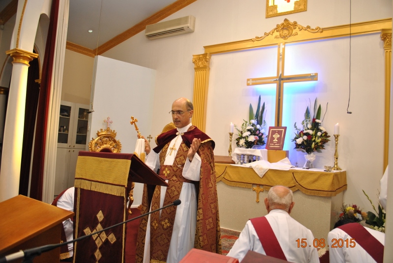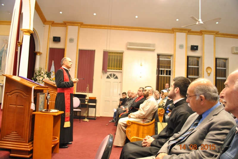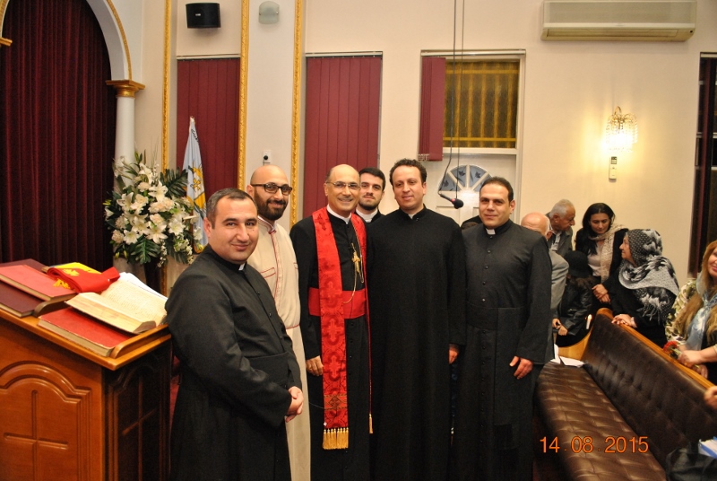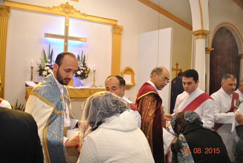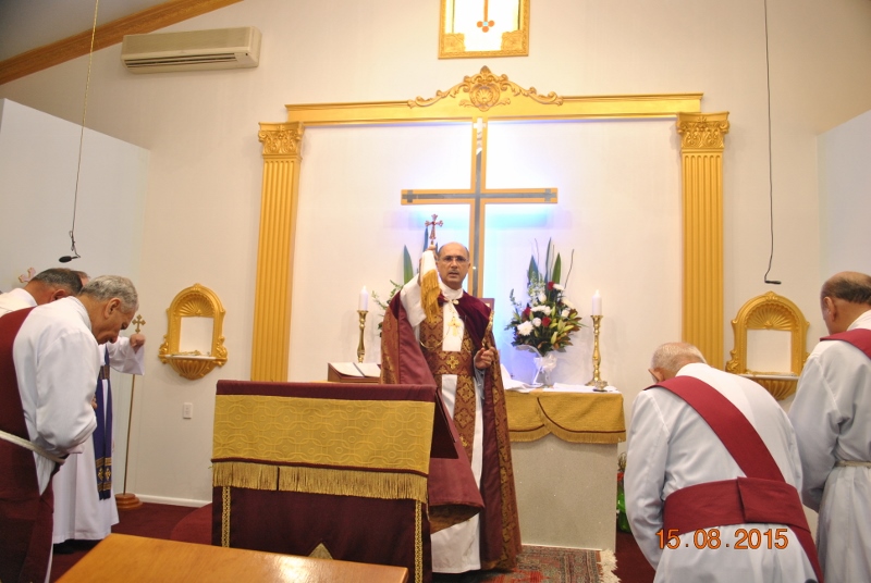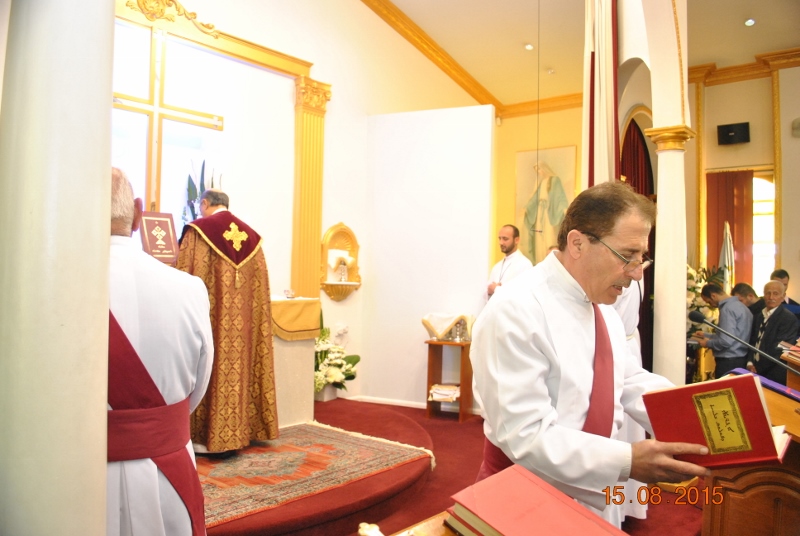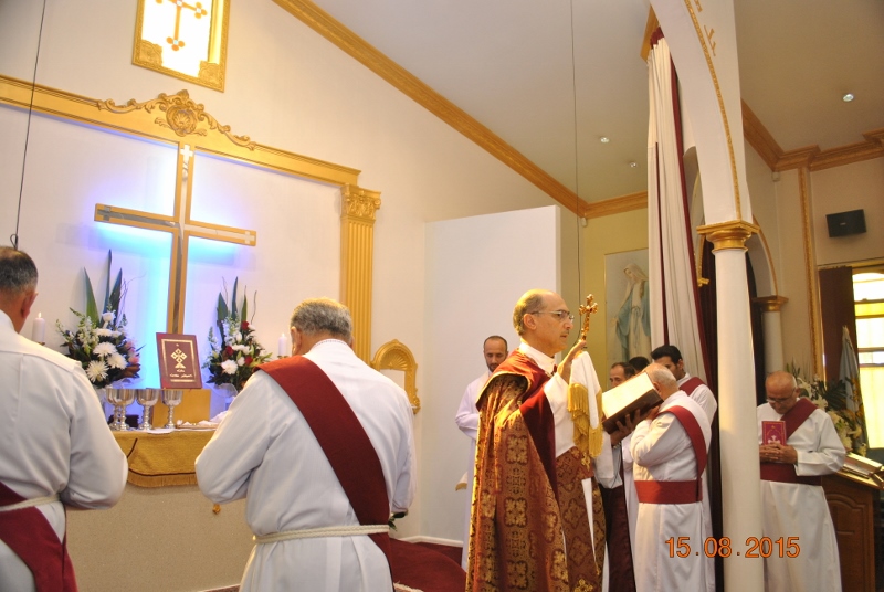 وصباحاً، وبتاريخ 15/8/2014 ولمناسبة تذكار انتقال القديسة مريم العذراء، رعى غبطته قداس هذه المناسبة الجليلة في كنيسة مريم العذراء في فيرفيلد.