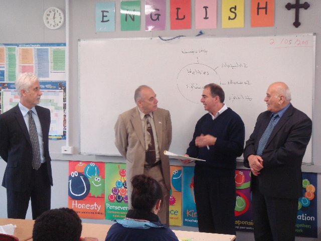 ففي كلية مار نرساي الاشورية التقى الضيف الزائر والوفد المرافق معه، السيدين، جون حزقيال والسيد ادور دنخا، مدير ومعاون الكلية، اللذان قدما شرحاً وافياً عن الاستراتيجيات التي تتخدها الكلية للمحافظة على أبنائها في معترك الغربة، وسبل الارتقاء بهم في المجتمع الاسترالي.