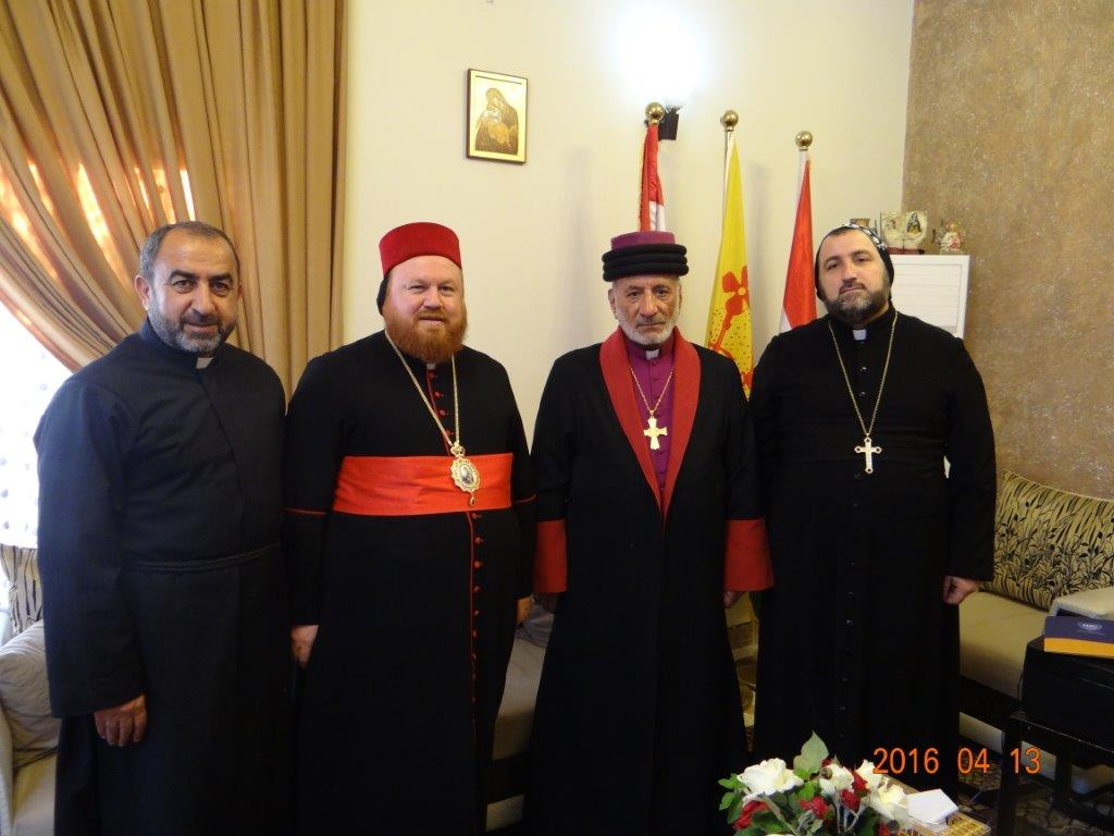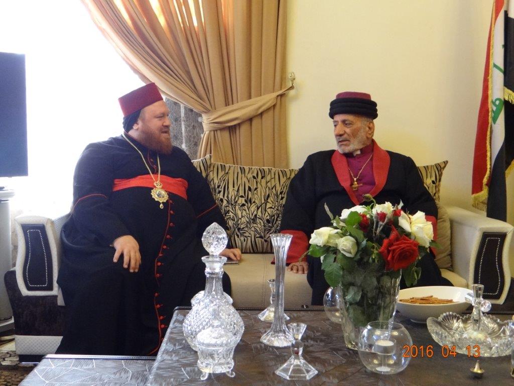 قام قداسة البطريرك مار كيوركيس الثالث صليوا، بطريرك كنيسة المشرق الاشورية في العالم، مساء الاربعاء 13 من نيسان 2016، بزيارة الى مطرانية السريان الارثذوكس في عينكاوة، يرافقه كل من الاب ايشا داود والاب شموئيل الشماس اثنييل.