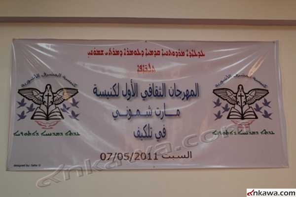 برعاية غبطة المطران مار كوركيس صليوا الوكيل البطريركي لكنيسة المشرق الاشورية في العراق السامي الاحترام. تم افتتاح المهرجان الثقافي الاول لكنيسة مارت شموني في تلكيف يوم السبت بتاريخ 7 / 5 / 2011 .