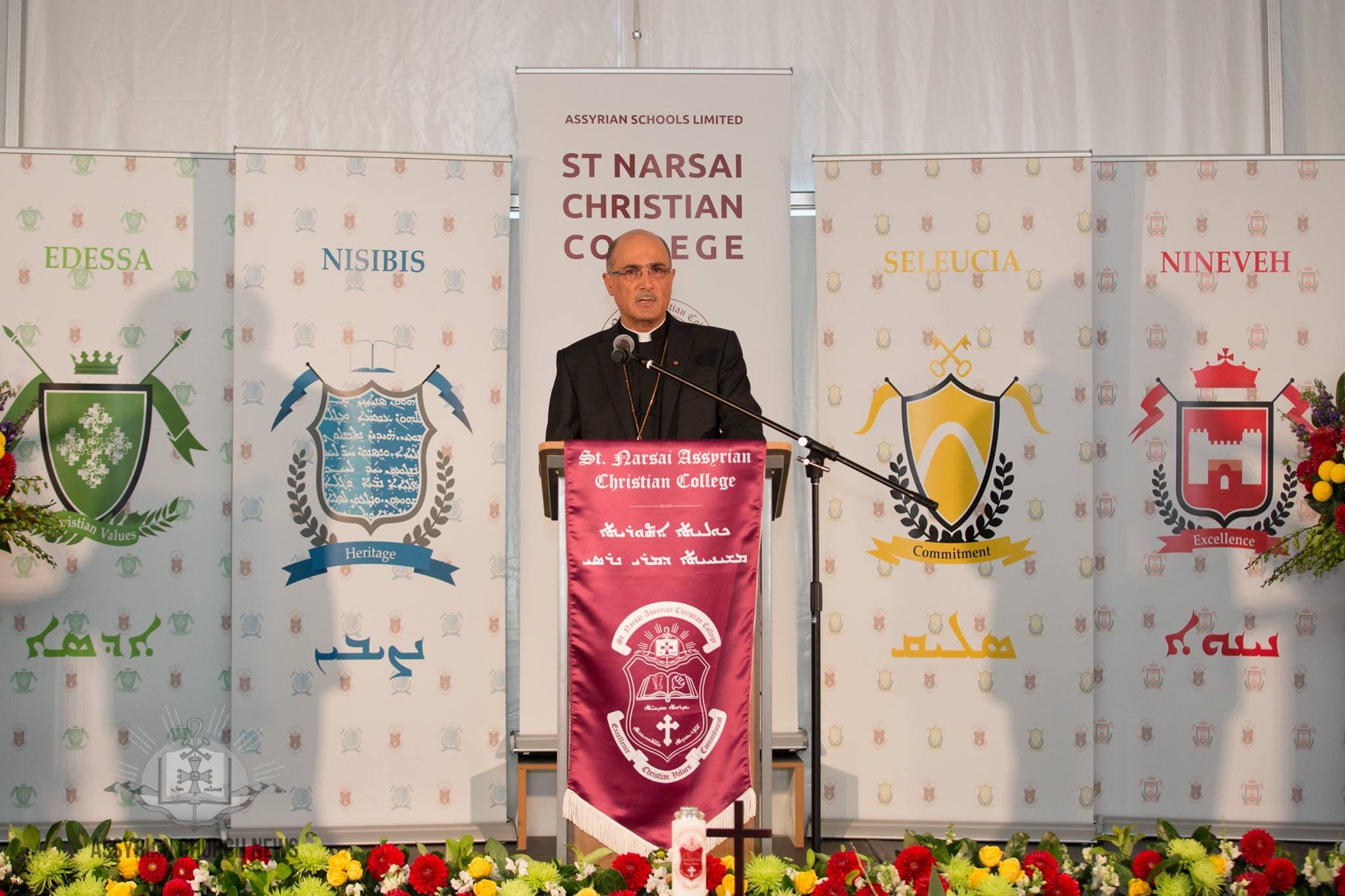 ثم تحدث غبطته بايجاز عن تأريخ المدارس الآشورية وأهمية التعليم فيها للاشوريين ودورها في اثراء ثمار المعرفة، وكيف بدء الحلم عام 2001 بافتتاح مدرسة القديس ربان هرمزد اعقبه بعد ست سنوات، تشييد كلية مار نرساي في مكان مؤقت في نادي نينوى سابقاً، والتي هي مدعاة فخر للأجيال القادمة، كونها تتيح لهم الفرصة للحصول على تعليمهم في مدرسة آشورية خاصة.
