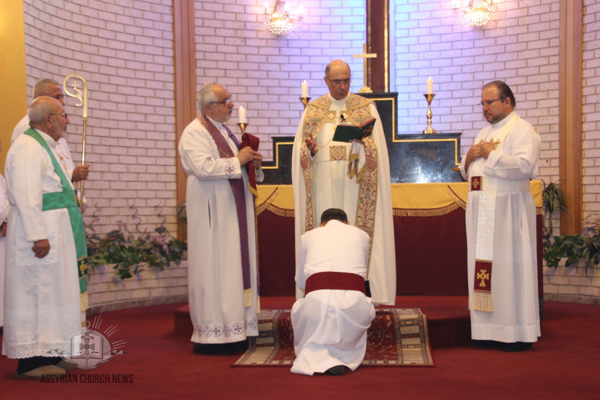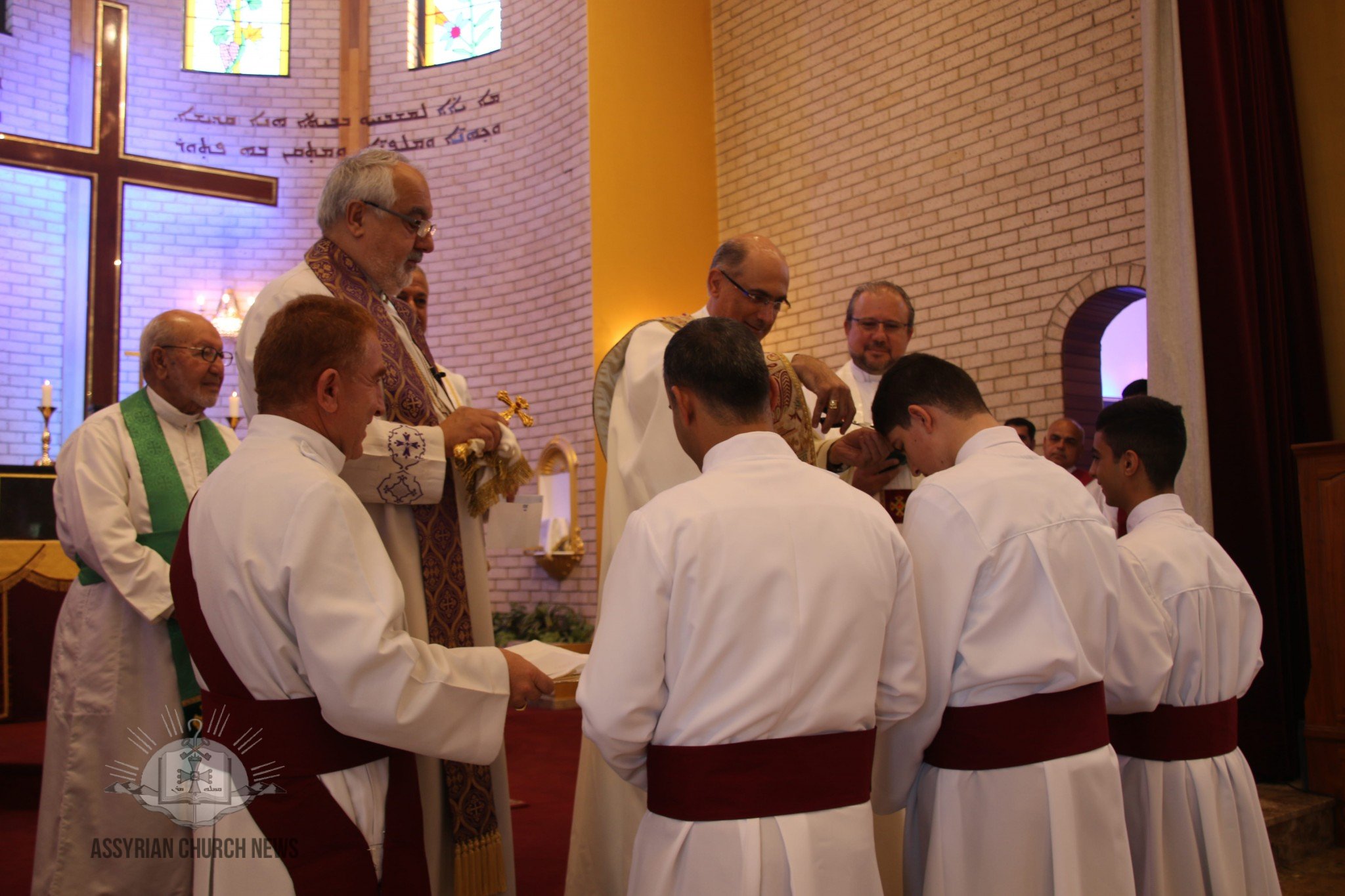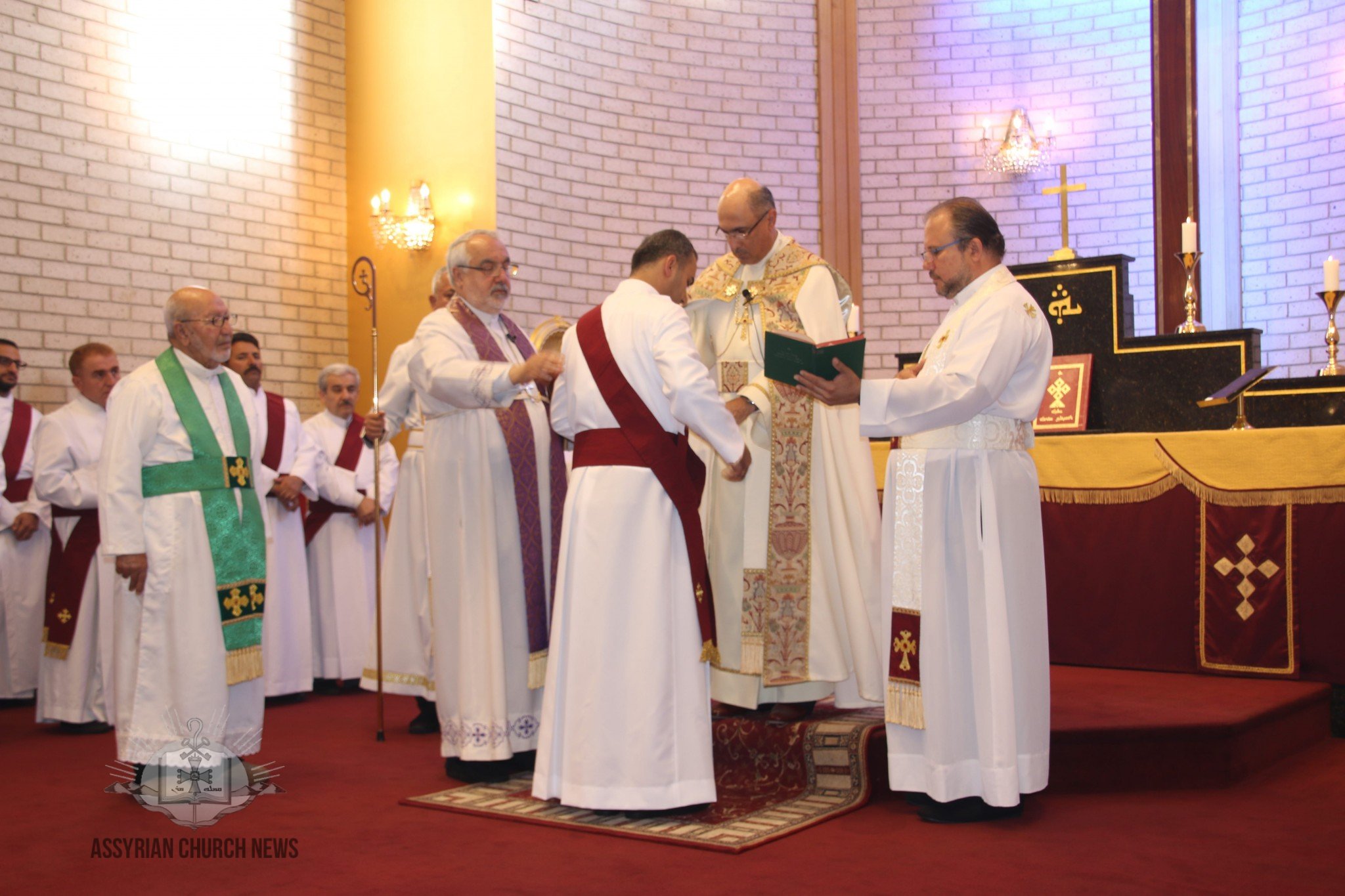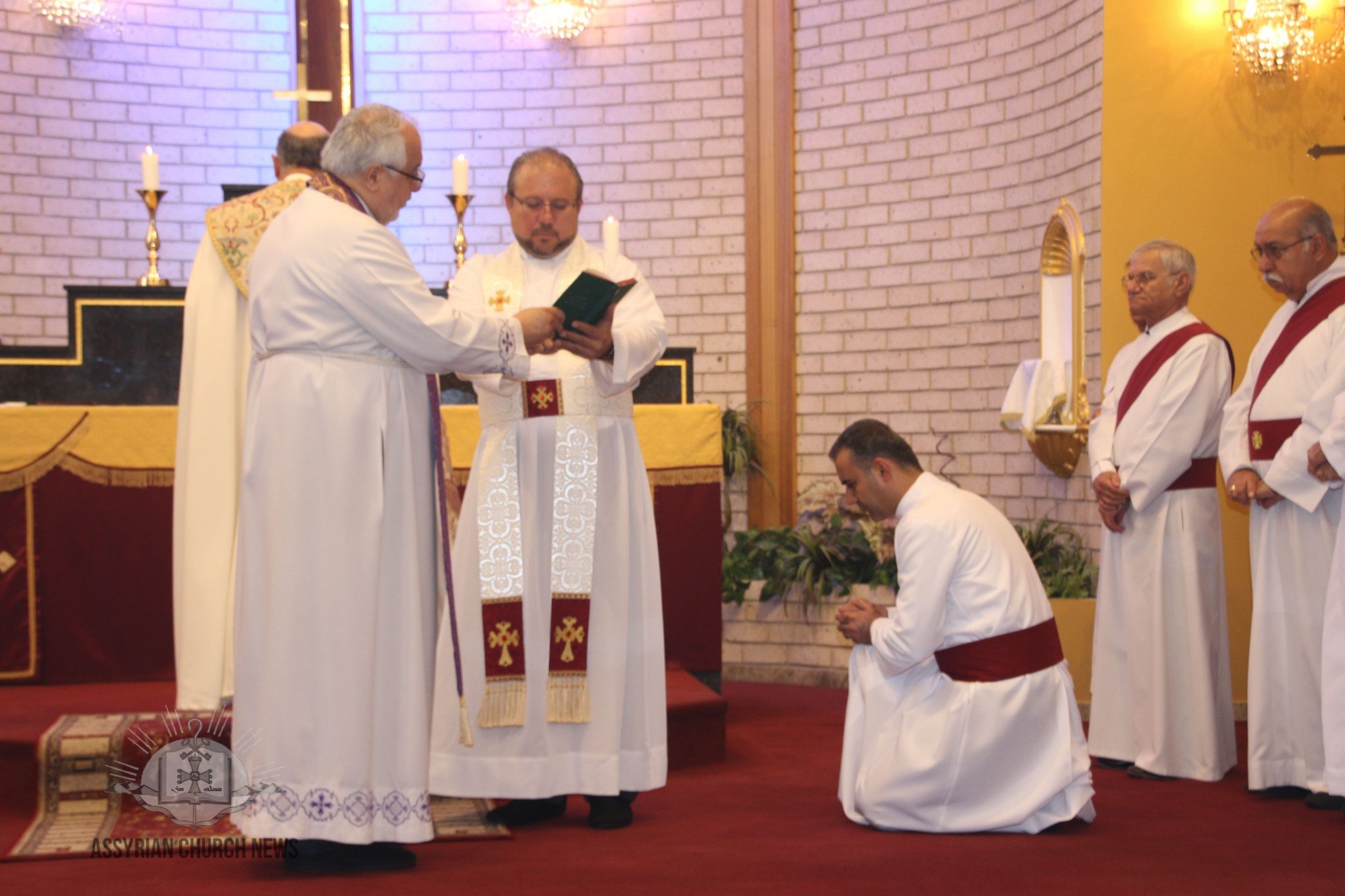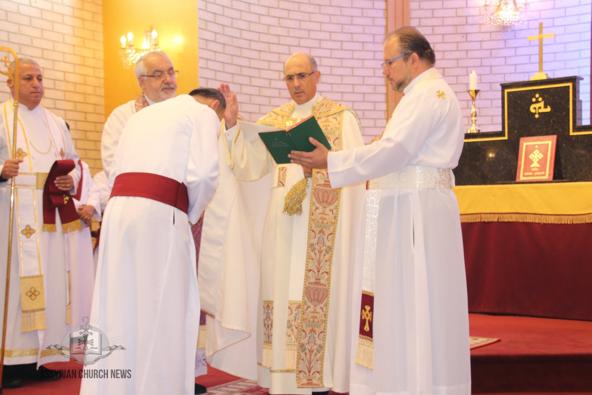 وتمت مراسيم الرسامة، بوضع اليمين المباركة لغبطة المطران مار ميلس زيا، الوكيل البطريركي لكنيسة المشرق الآشورية في استراليا ، نيوزلندا ولبنان، وبحضور الخور اسقف اشور لازار، القس موشي برخو، القس بنيامين شليمون والقس شموئيل شموئيل، مع جمع كبير من رعية الكنيسة المباركة، ليتأهل هؤلاء بالروح القدس لخدمة كنيسة المسيح المباركة و للعمل الروحي المنوط بهم، حسب فكر الله.