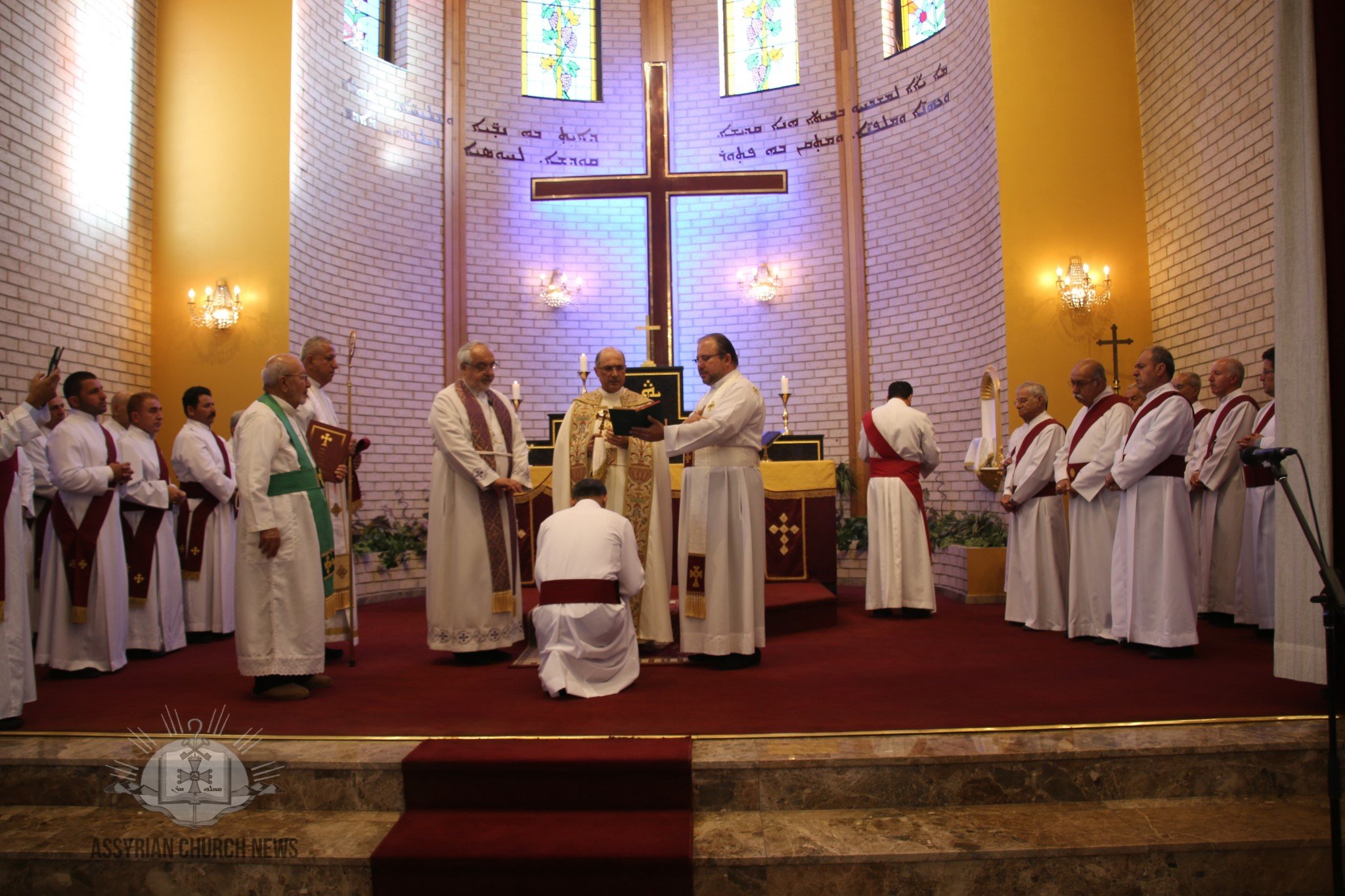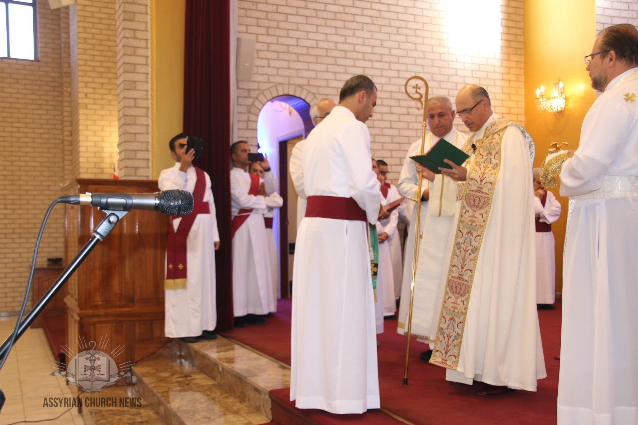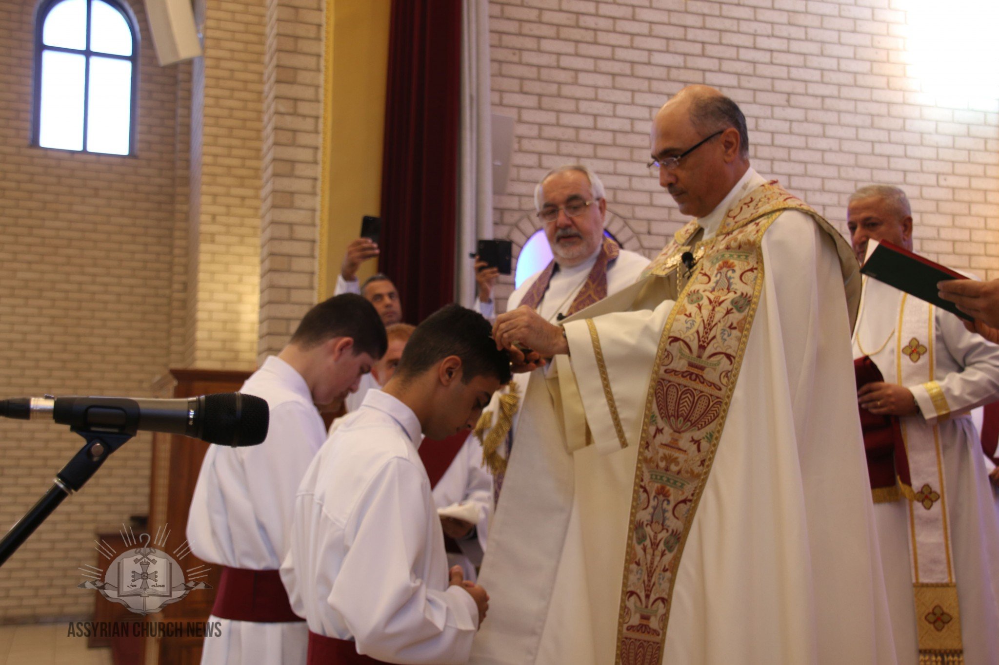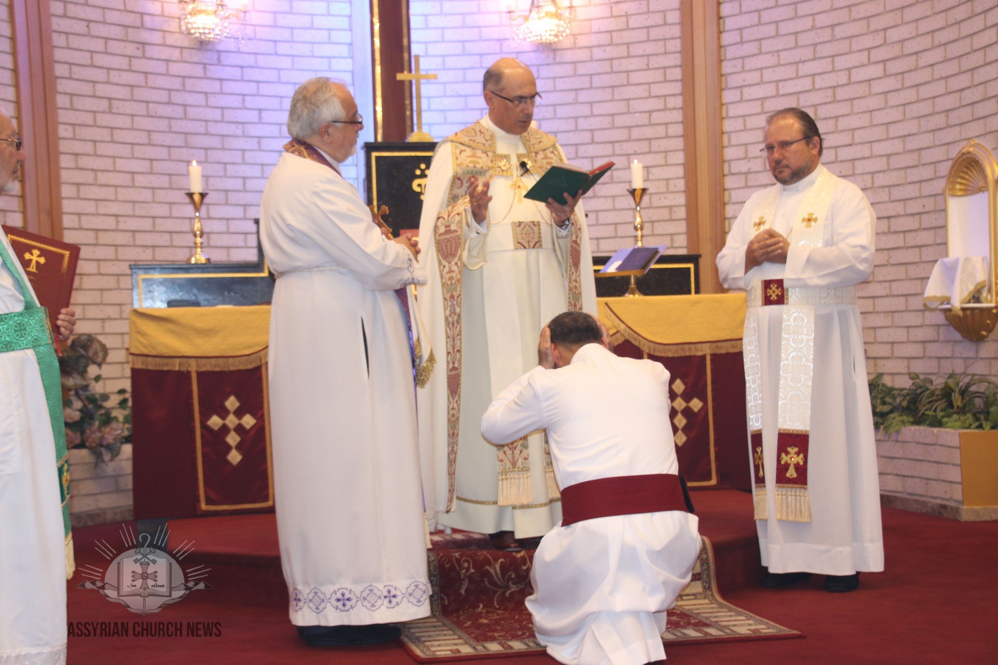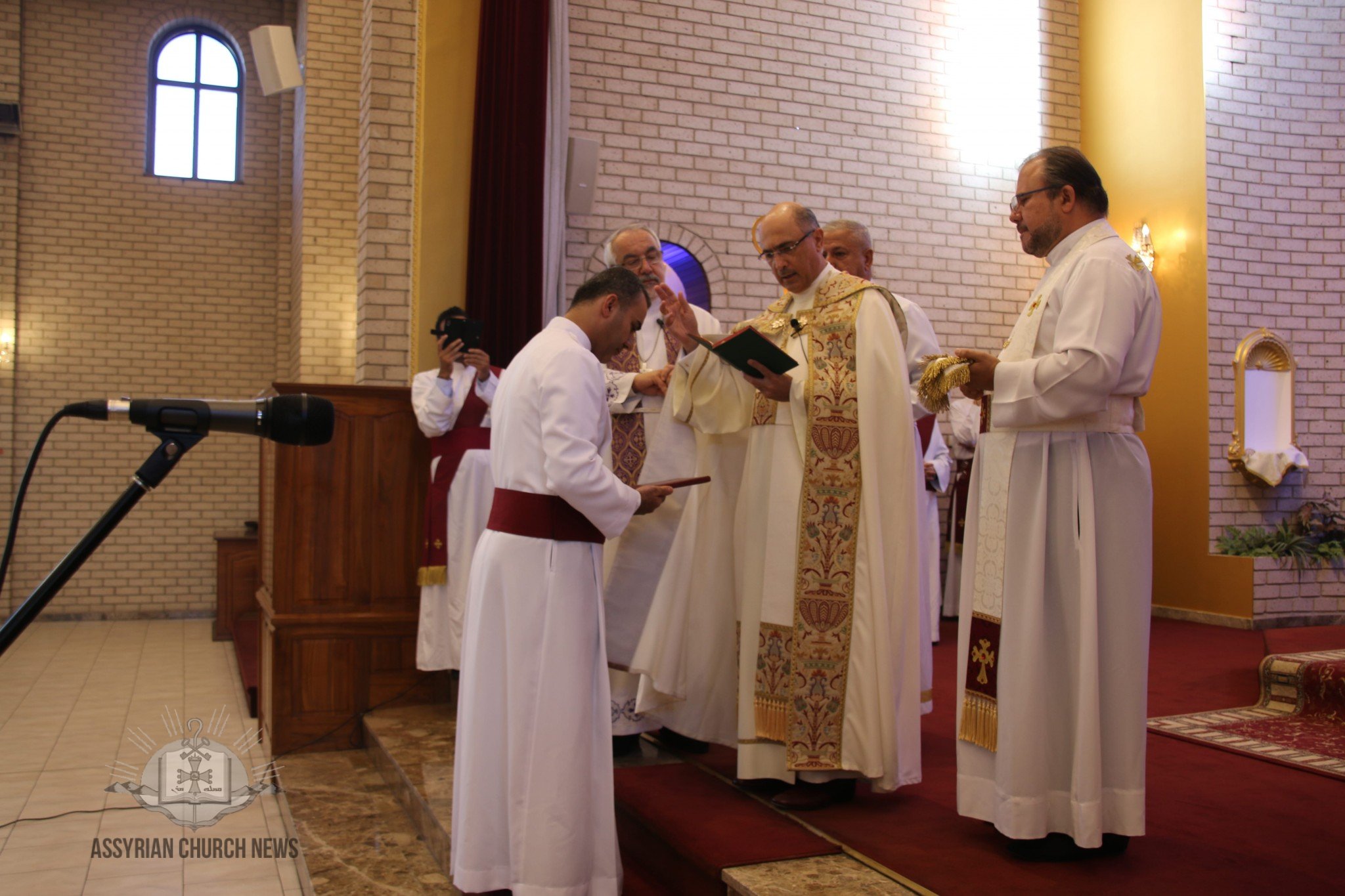 وتمت مراسيم الرسامة، بوضع اليمين المباركة لغبطة المطران مار ميلس زيا، الوكيل البطريركي لكنيسة المشرق الآشورية في استراليا ، نيوزلندا ولبنان، وبحضور الخور اسقف اشور لازار، القس موشي برخو، القس بنيامين شليمون والقس شموئيل شموئيل، مع جمع كبير من رعية الكنيسة المباركة، ليتأهل هؤلاء بالروح القدس لخدمة كنيسة المسيح المباركة و للعمل الروحي المنوط بهم، حسب فكر الله.