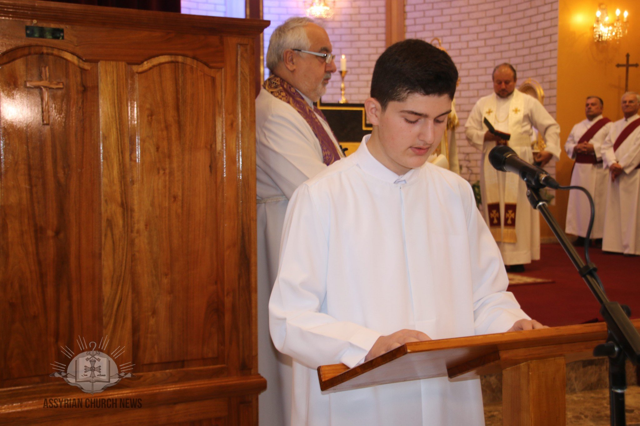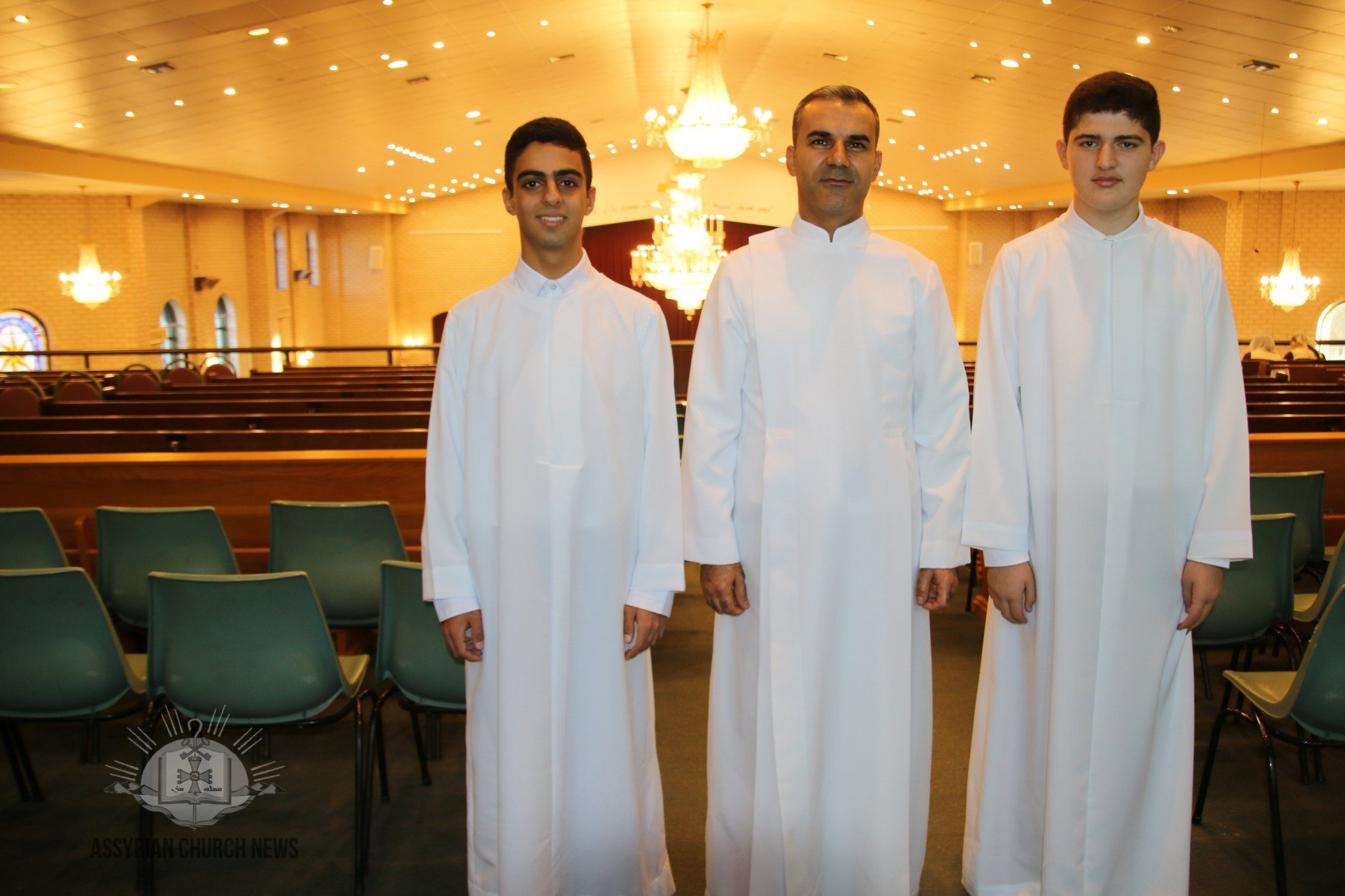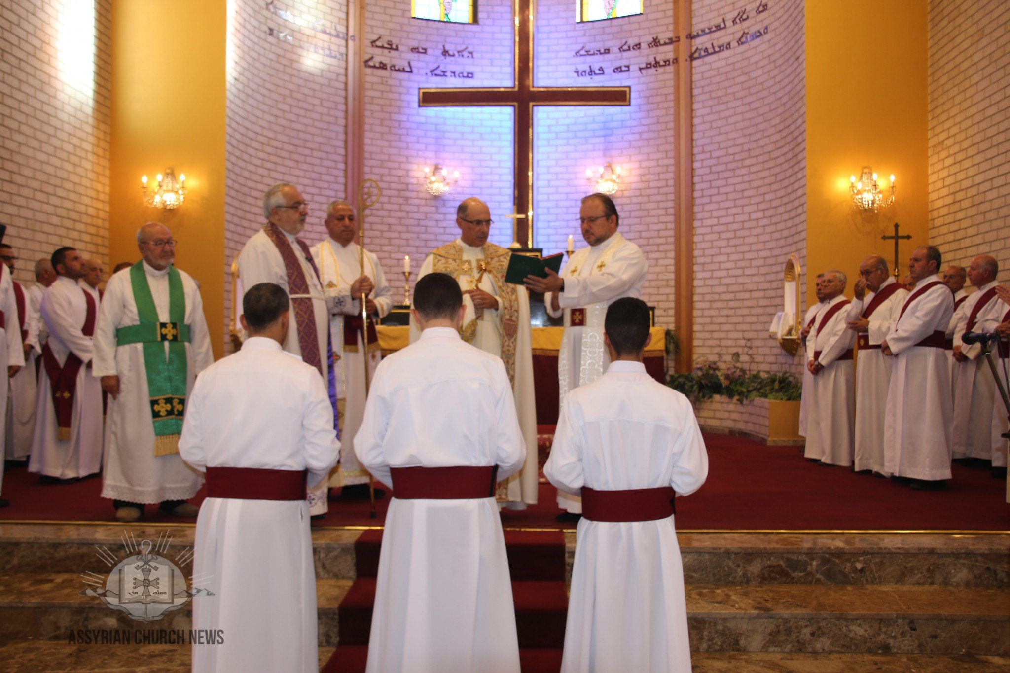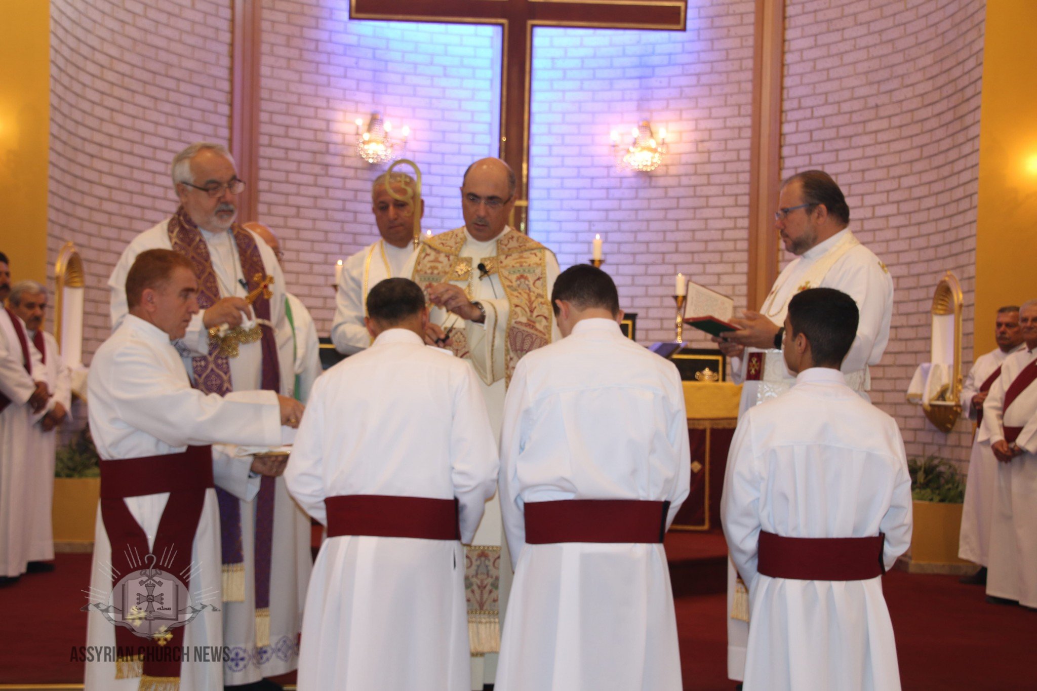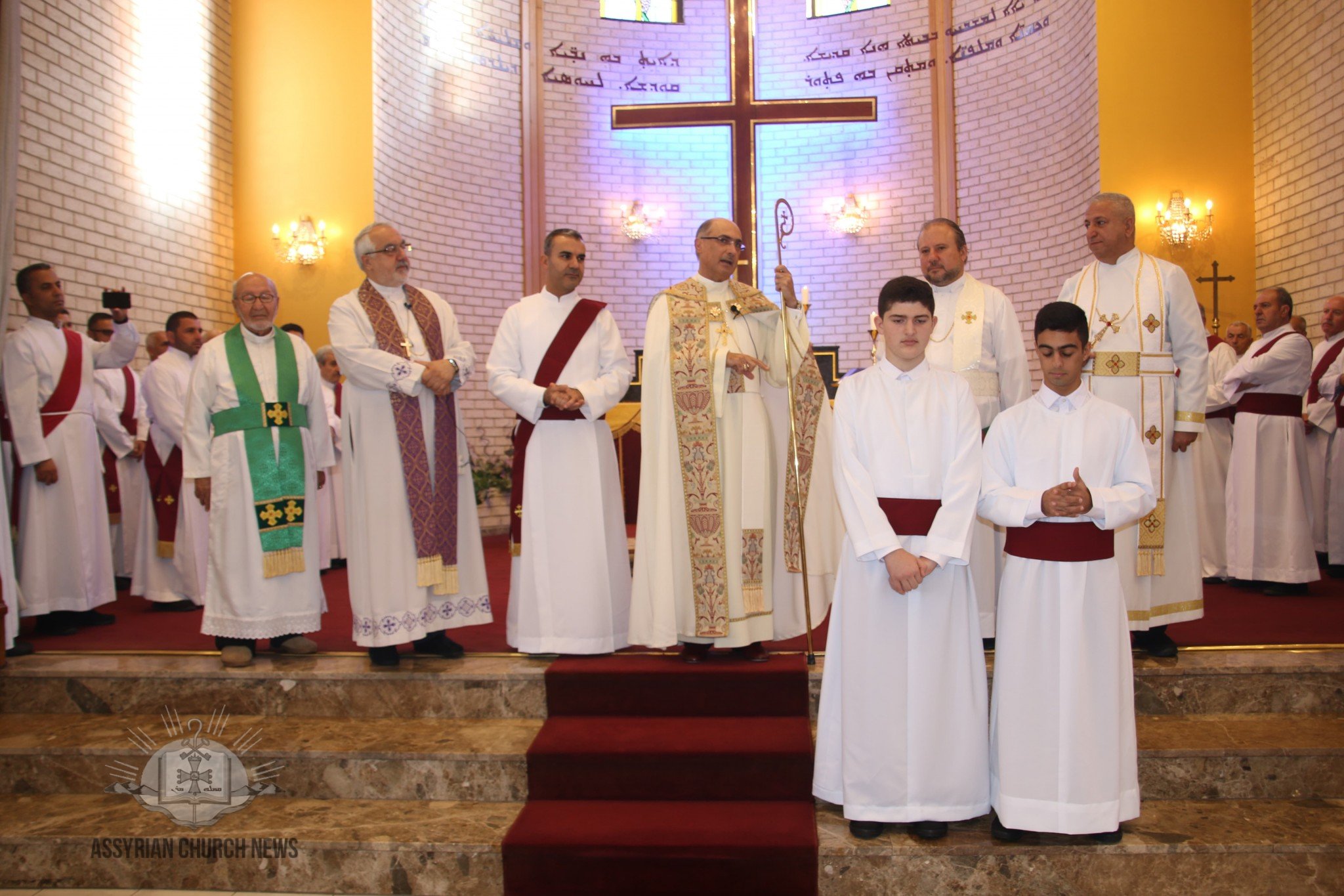 وتمت مراسيم الرسامة، بوضع اليمين المباركة لغبطة المطران مار ميلس زيا، الوكيل البطريركي لكنيسة المشرق الآشورية في استراليا ، نيوزلندا ولبنان، وبحضور الخور اسقف اشور لازار، القس موشي برخو، القس بنيامين شليمون والقس شموئيل شموئيل، مع جمع كبير من رعية الكنيسة المباركة، ليتأهل هؤلاء بالروح القدس لخدمة كنيسة المسيح المباركة و للعمل الروحي المنوط بهم، حسب فكر الله.