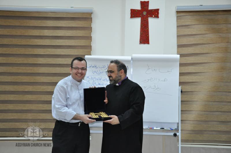 اختتم اللقاء بتقديم درع المركز من قبل الخور أسقف اوكن هرمز الى الاب البير هشام تثمينا ً للمعلومات القيمة ولجهوده المتميزة التي بذلها خلال الدورة، كما تم تقديم شكر وتقدير للحاضرين.