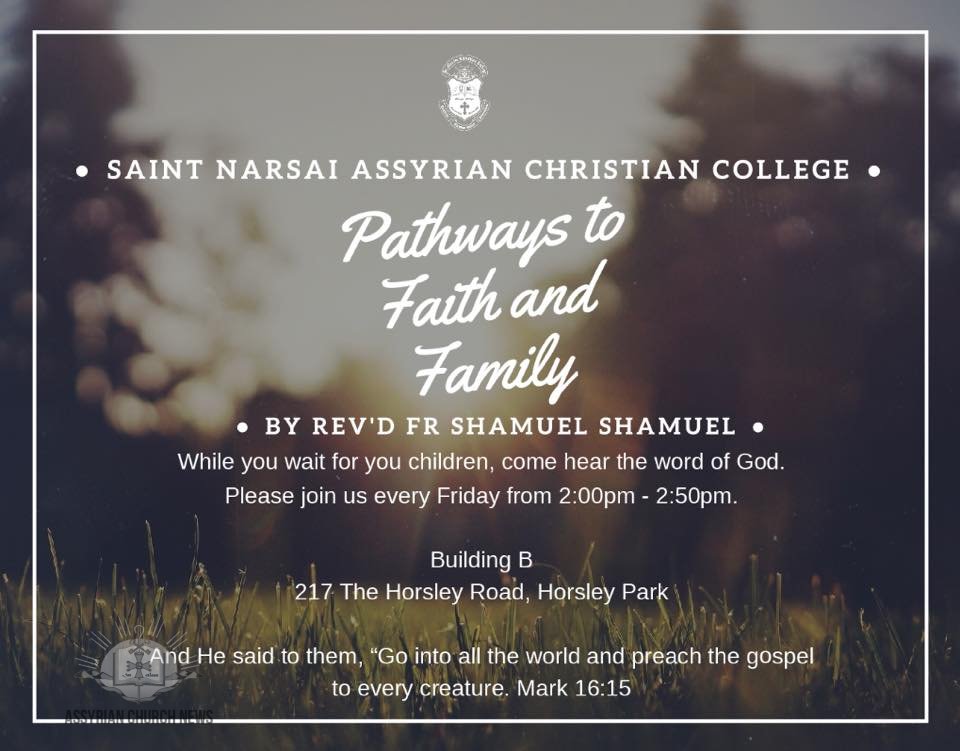 بالتزامن مع المحاضرات والدروس التي تقيمها كلية مار نرساي الآشورية المسيحية في سيدني في التربية المسيحية، اطلقت الكلية مؤخراً ومن موقعها الجديد، محاضرات أسبوعية خاصة وموجهة لاولياء أمور الطلبة، كل يوم جمعة من الساعة الثانية ظهراً ولحين وقت انتهاء الدوام الرسمي للطلاب.
