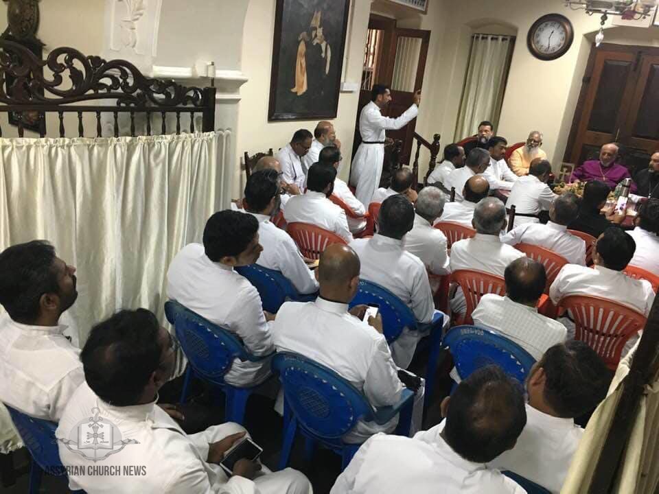 وضمن البرنامج المعد لقداسة البطريرك في الهند التقى قداسته بإكليروس الكنيسة في تريشور والمتمثلين بغبطة المطران مار ابرم موكن والاساقفة الاجلاء والاباء الكهنة الافاضل.
